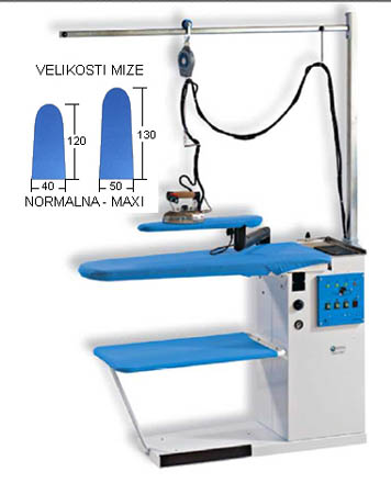 Ogrevana vakumska likalna miza z avtomatskim kotlička v dveh velikostih mize (40 x 120cm in 50 x 130cm). Odlikuje se po dobrem odsesavanju in mali porabi energije. Ima vgrajemo elektronsko kontrolo nivoja vode v parnem kotličku. Dobavlja se z enim ali dvema profesionalnima likalnikoma.